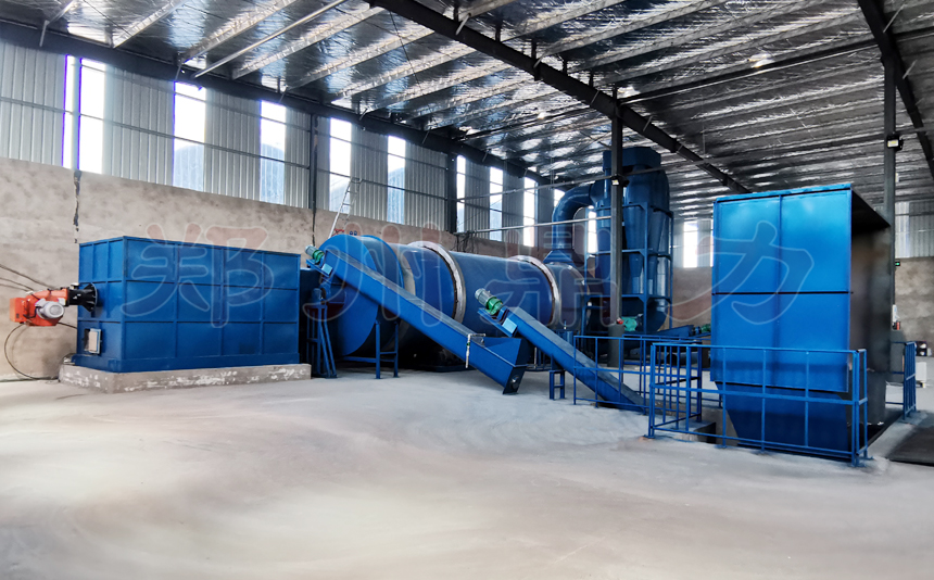 噴漿玉米皮烘干機(jī)主要由供熱源、上料機(jī)、進(jìn)料機(jī)、回轉(zhuǎn)滾筒、出料機(jī)、引風(fēng)機(jī)、卸料器和配電柜及冷卻系統(tǒng)構(gòu)成;工作原理如下:玉米漿和玉米皮在混合機(jī)內(nèi)混合均勻,混合后含水在35~40%的濕玉米皮由上料機(jī)輸送到進(jìn)料機(jī),由進(jìn)料機(jī)把玉米皮輸送到干燥滾筒內(nèi),玉米皮在干燥滾筒內(nèi)均布的抄板器翻動(dòng)下,均勻分散與熱空氣充分接觸,達(dá)到傳熱、傳質(zhì)的干燥目的。干燥后的玉米皮渣在滾筒終端經(jīng)星形卸料器排出成品,由出料機(jī)把干料輸出,完成干燥過程。干燥后產(chǎn)品經(jīng)過冷卻系統(tǒng),物料干燥程度與顏色均勻一致,十分理想。