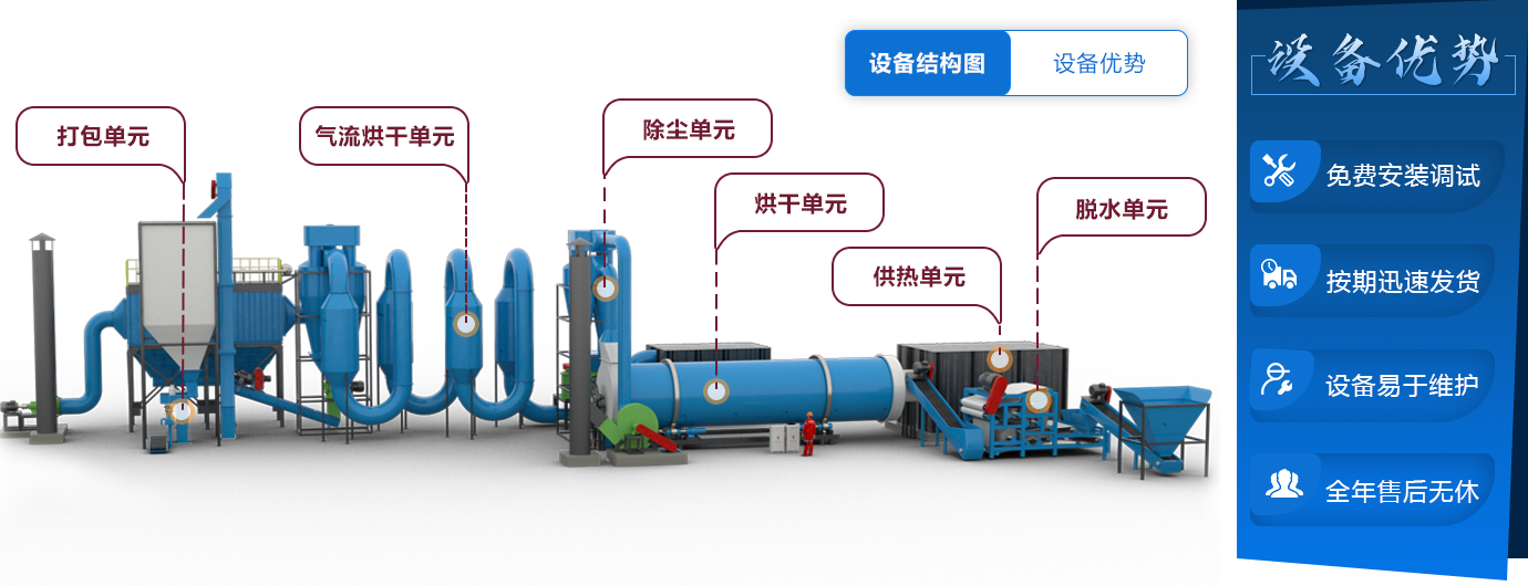 薯渣烘干機生產(chǎn)線主要包括帶式壓濾機、滾筒烘干機和氣流烘干系統(tǒng)設(shè)備,帶式壓濾機具有脫水效果穩(wěn)定,功耗小,耐用和骨料回收率高的特點,而滾筒烘干機具有成熟的技術(shù)體系,高效、環(huán)保、低耗、高熱利用等技術(shù)特點,所以,我司薯渣脫水烘干成套設(shè)備在市場上具有良好的銷量和口碑。公司免費提供薯渣烘干技術(shù)方案,薯渣烘干設(shè)備配置清單、烘干機價格報價、烘干一噸薯渣成本、 烘干設(shè)備的熱源配置等詳信息,免費安裝和調(diào)試以及技術(shù)指導(dǎo),保障薯渣烘干線按時、高效、持續(xù)生產(chǎn)。