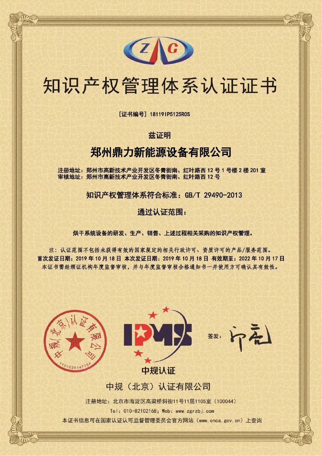 6、鄭州鼎力榮獲知識(shí)產(chǎn)權(quán)管理體系認(rèn)證證書